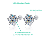 TY 0.3-2CT Moissanite Earrings 925 Sterling Silver Round Cut Stud Earrings Piercing Earrings for Men and Women Fine Jewelry
